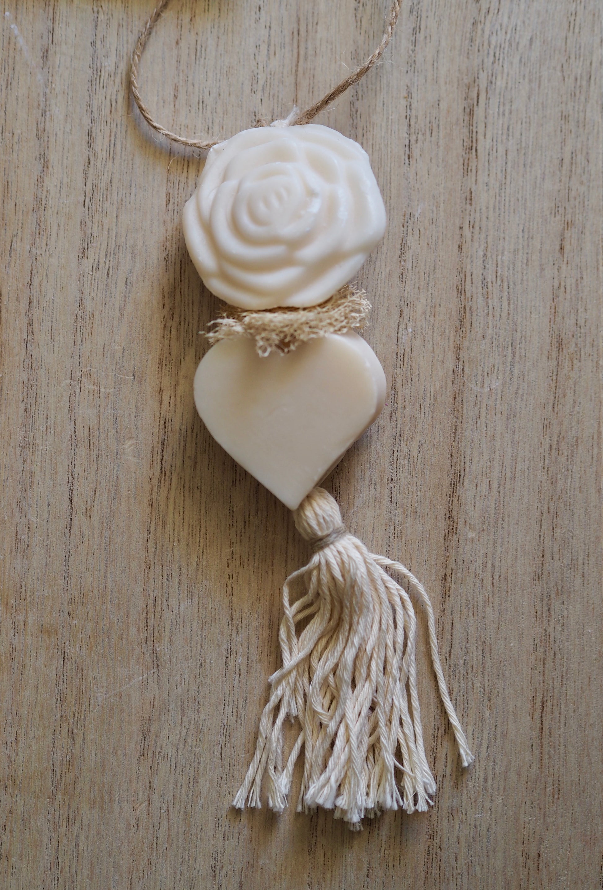 Tresse à savons parfumée à suspendre, fabriquée à la main avec sa senteur délicate, elle créera une décoration proche de la nature dans votre intérieur. Grâce à son accroche en chanvre, elle pourra être suspendue pour décorer et parfumer toutes les pièces de la maison. Nadia est ornée de savons et d'éléments naturels comme la loofah, le bois séché et une jolie finition avec un pompon en fibre naturelle.